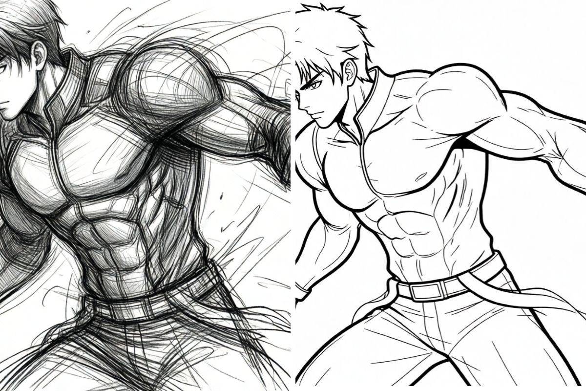The AI analyzes your sketch structure and removes noise, refining it into clean, consistent line art.